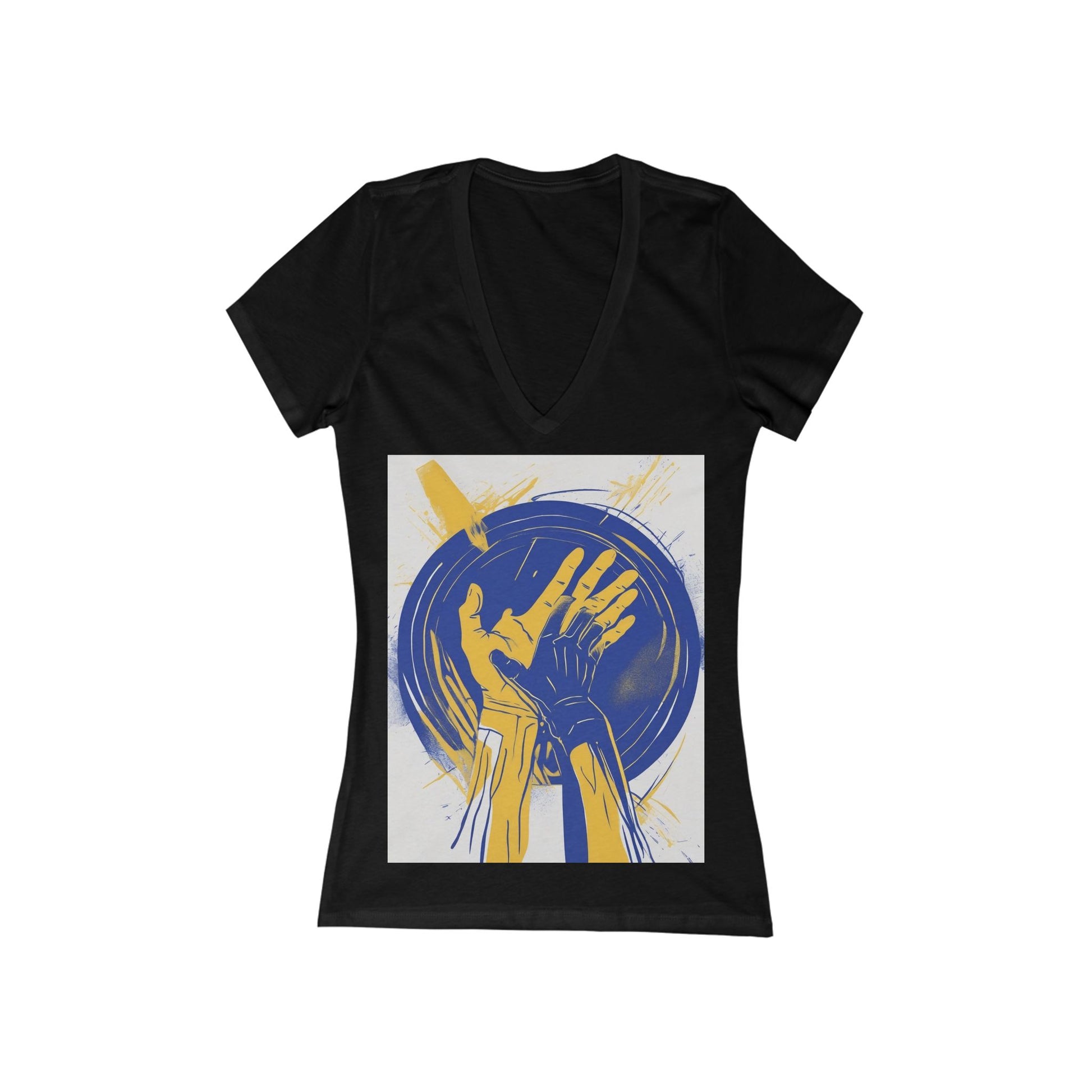 This is a classic custom women's deep v-neck t-shirt that fits great and feels better. Well-loved, this favorite strikes a modern feminine fit. Additionally, it's comfortable - a must-have in every woman's wardrobe. Side seams maintain fitting over time. The shoulders have tape to ensure durability. The collar has ribbed knitting for better elasticity.