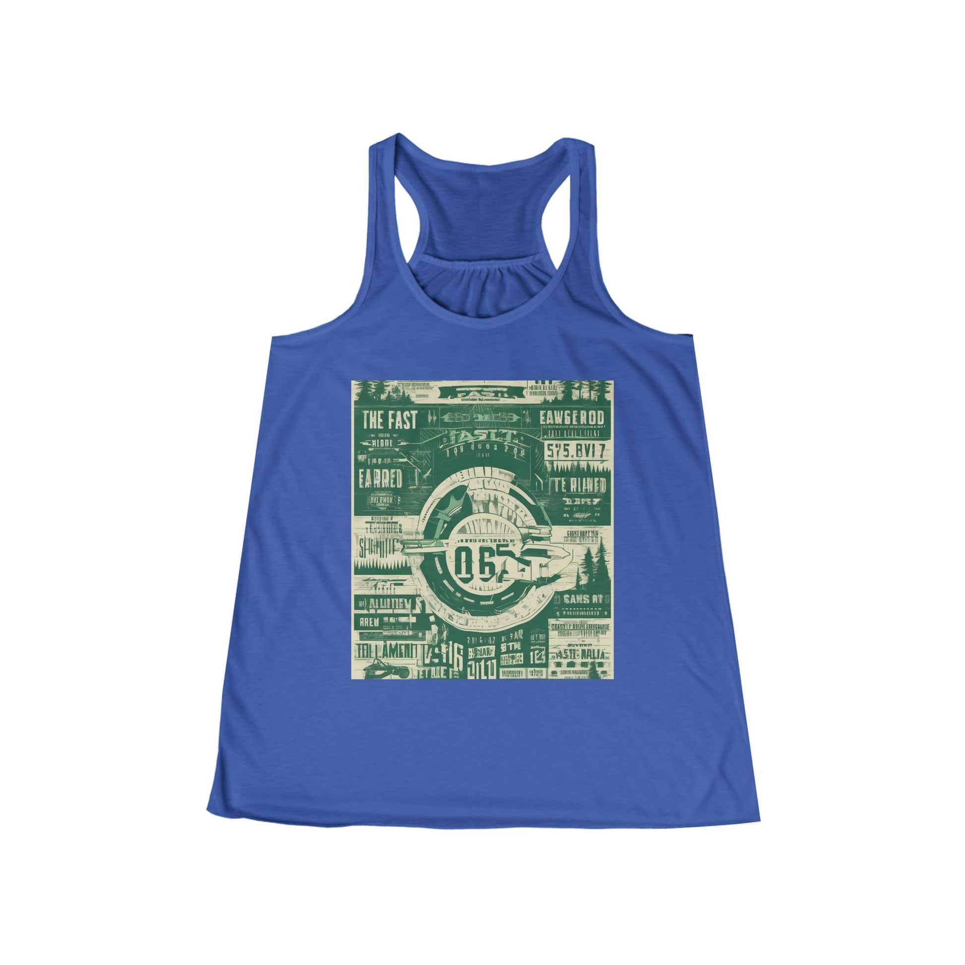 boostlete-mile-by-mile-type-fast-is-earned-big-blueprint-0041 — Women's Flowy Racerback Tank (B+C 8800)
