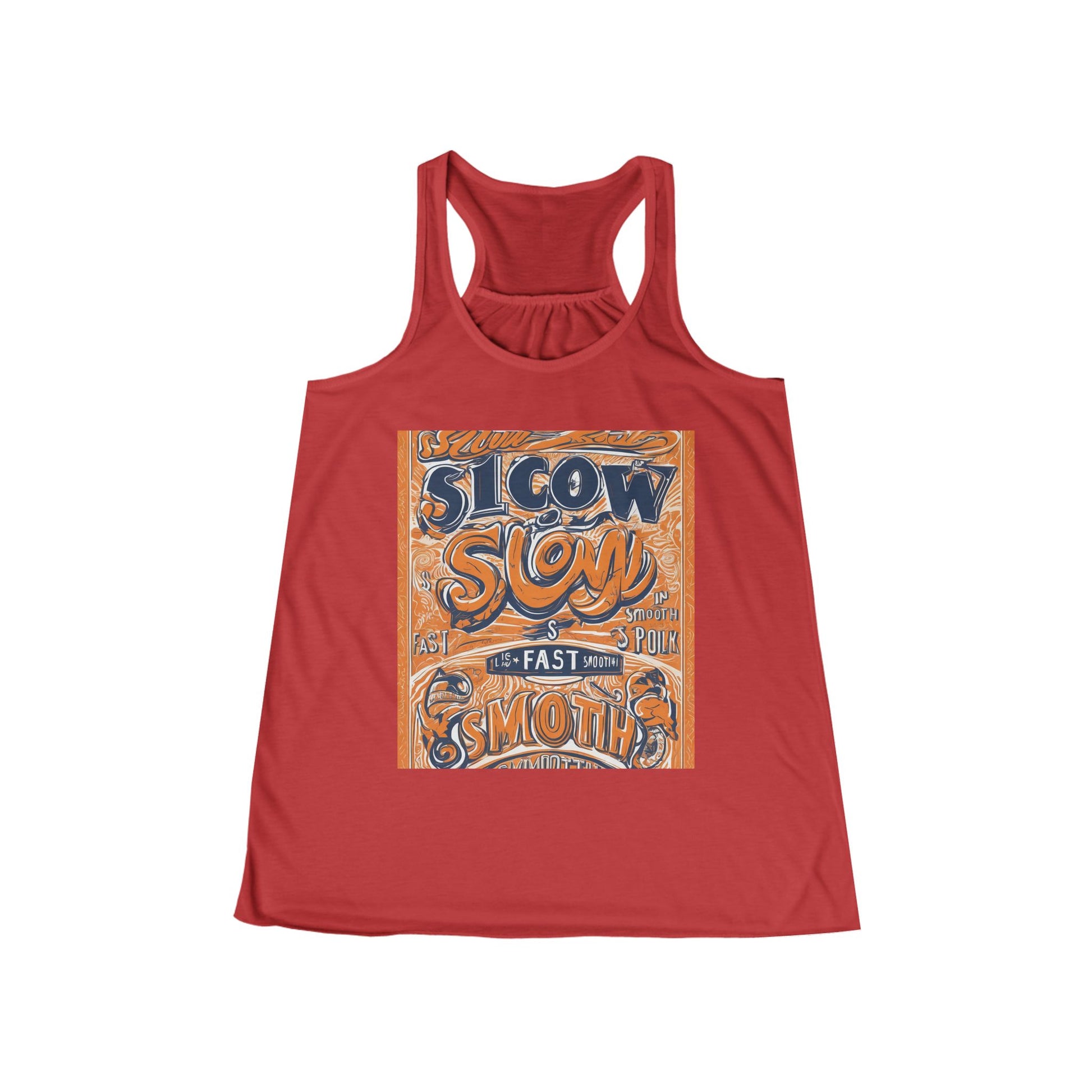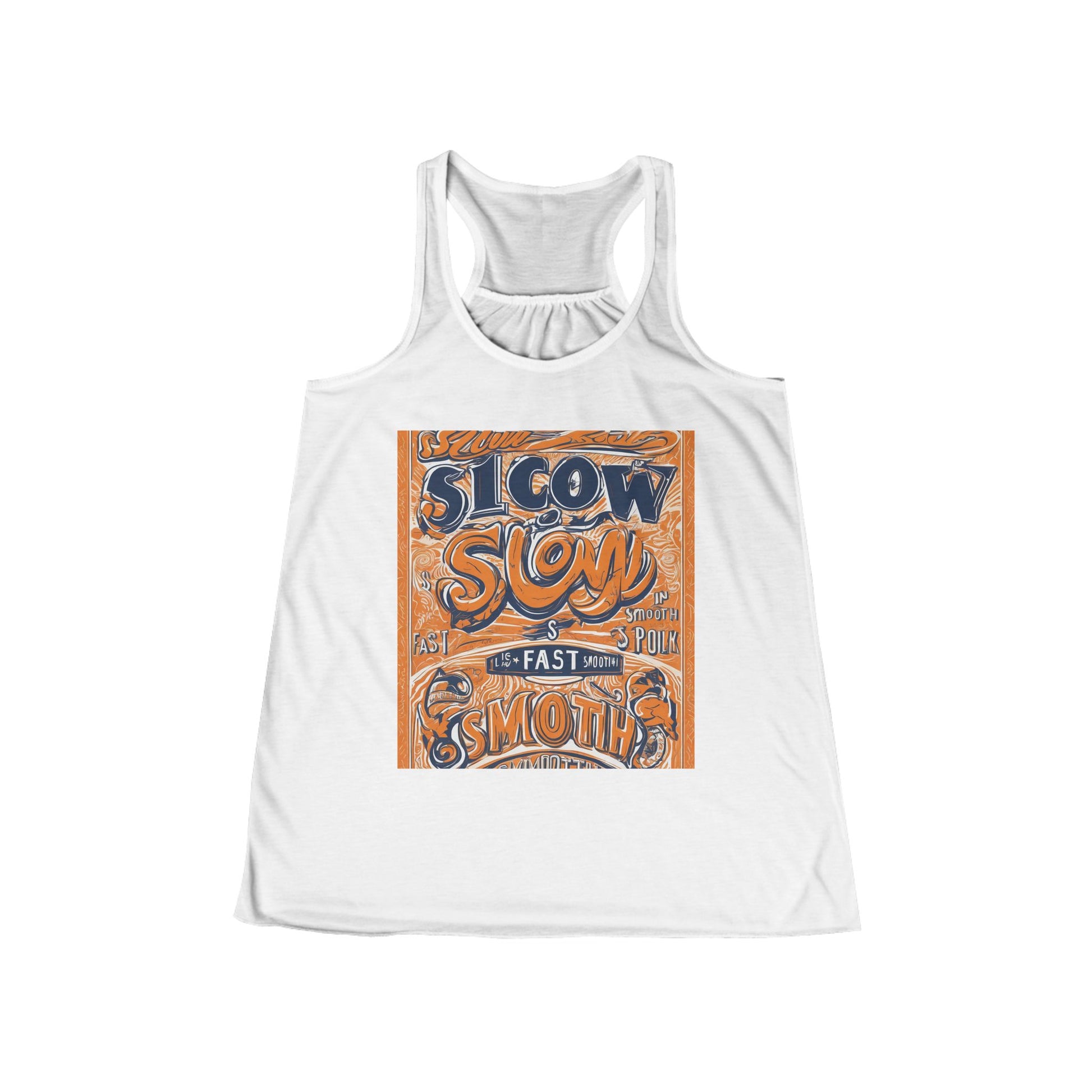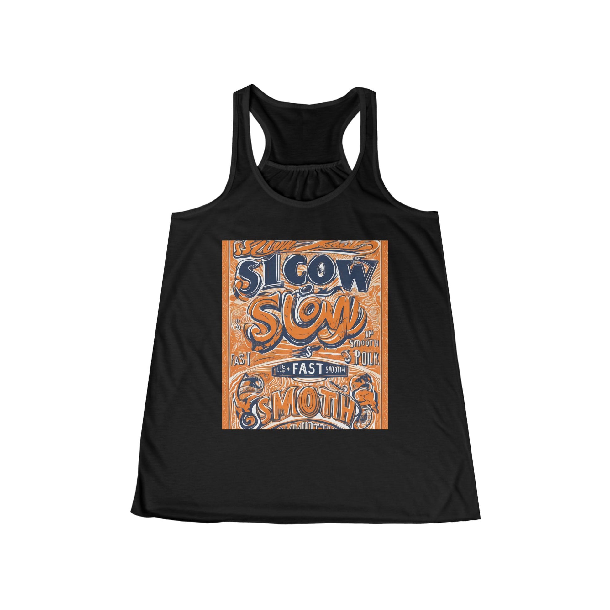 boostlete-rise-grind-type-slow-is-smooth-smooth-is-fast-outline-over-solid-engraved-0025 — Women's Flowy Racerback Tank (B+C 8800)